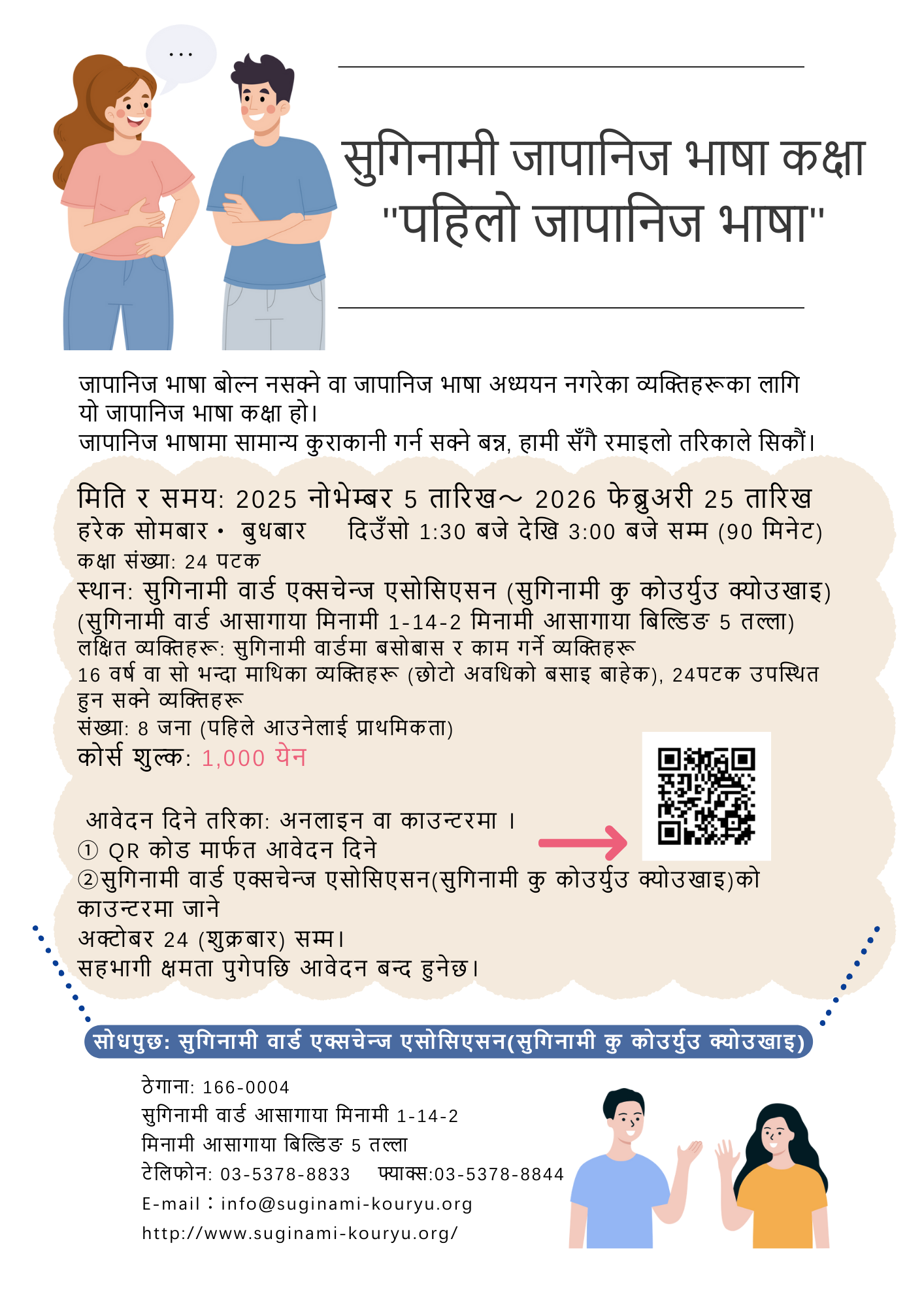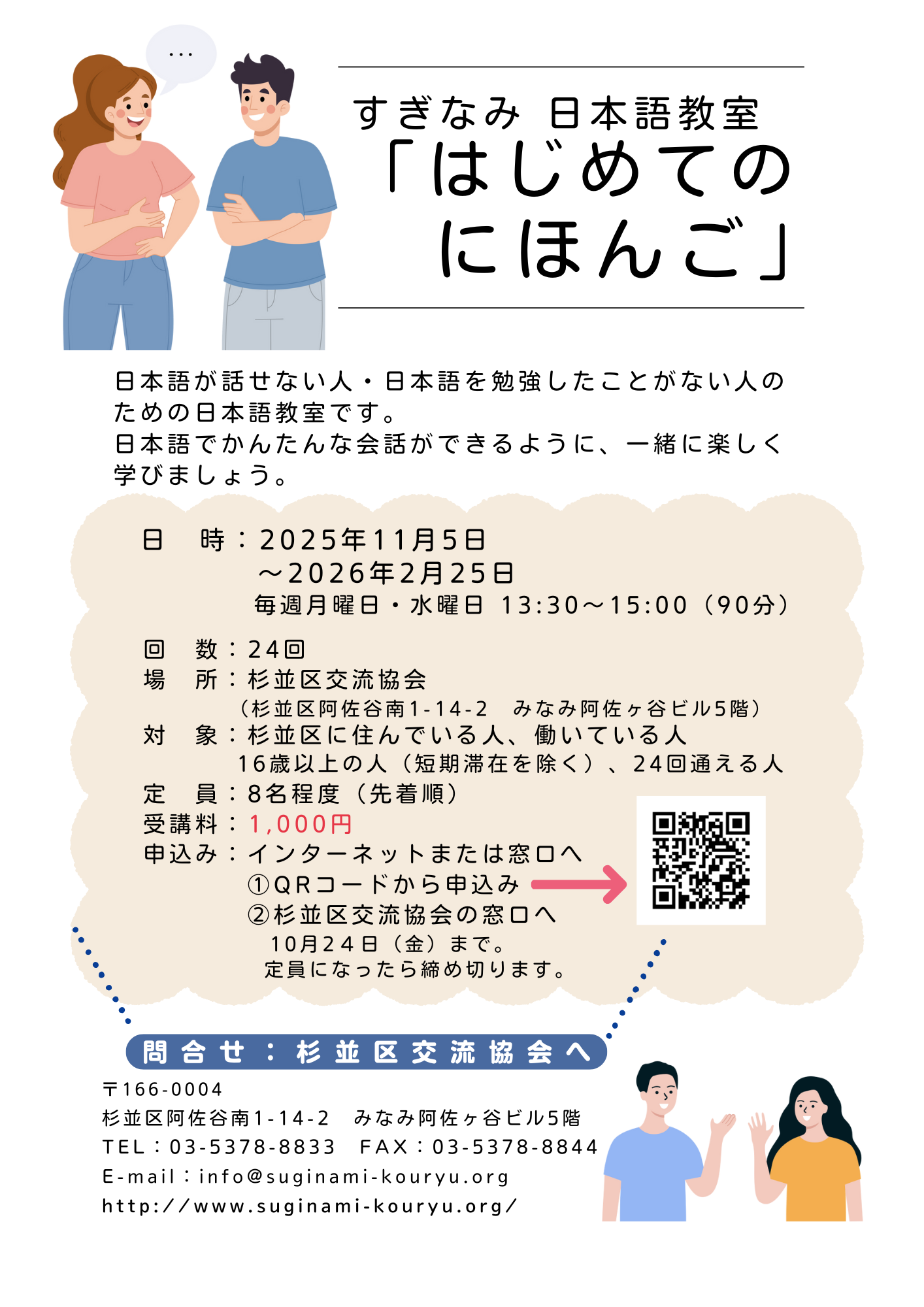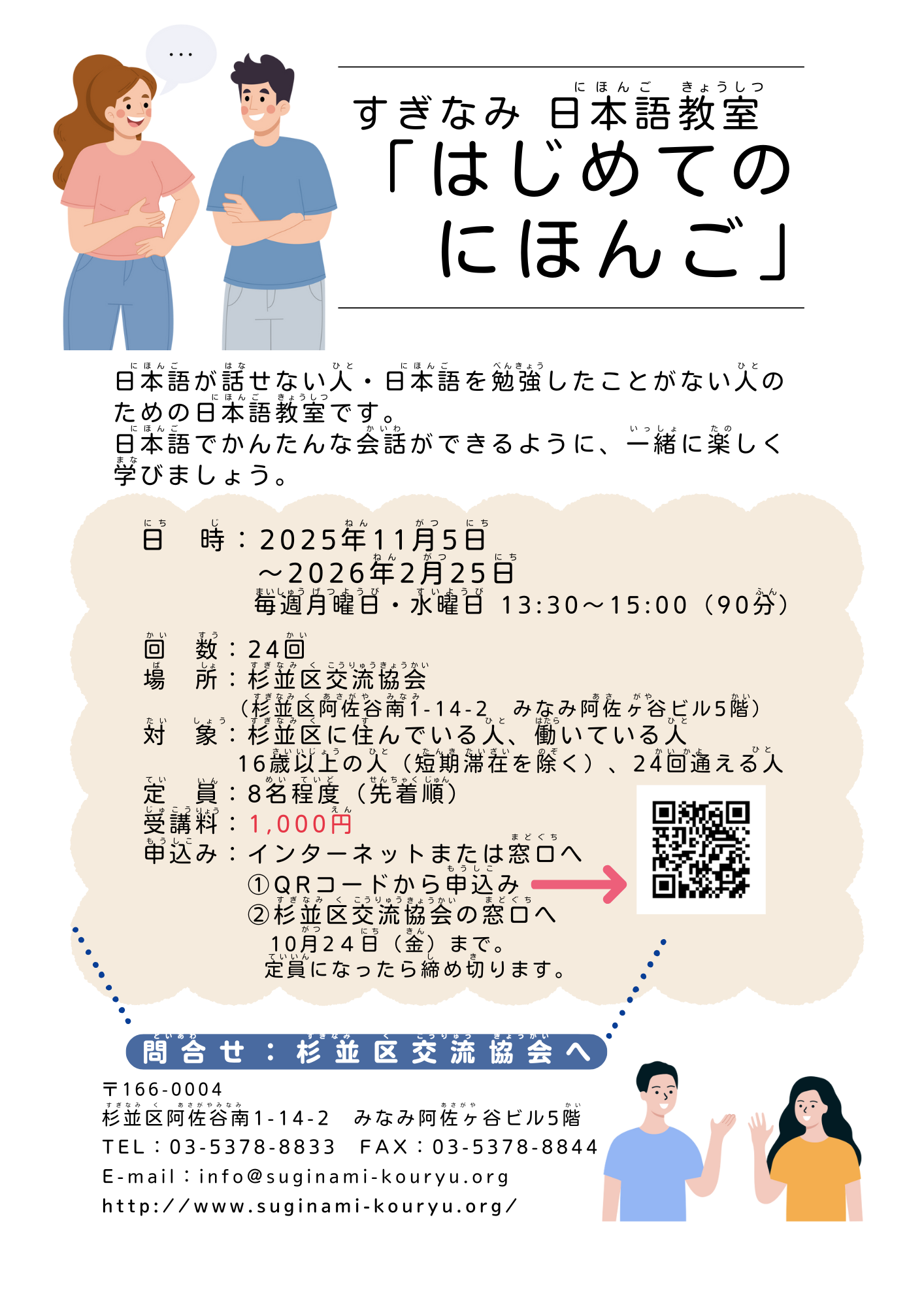 すぎなみ 日本語教室 「はじめてのにほんご」