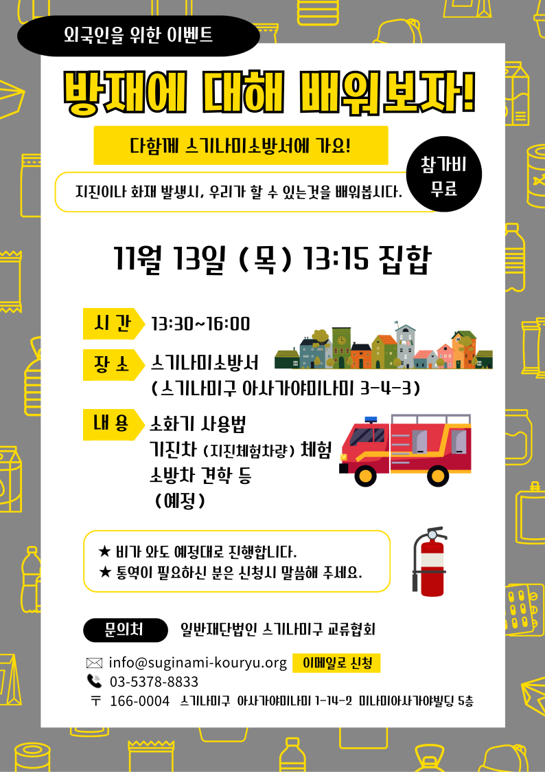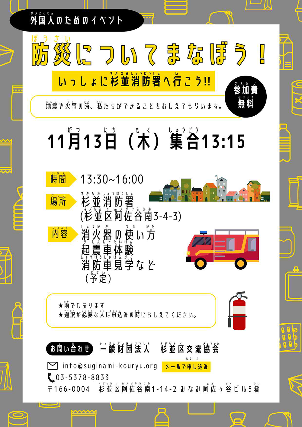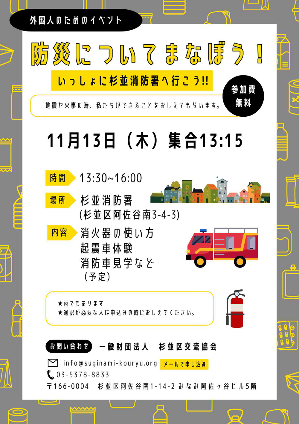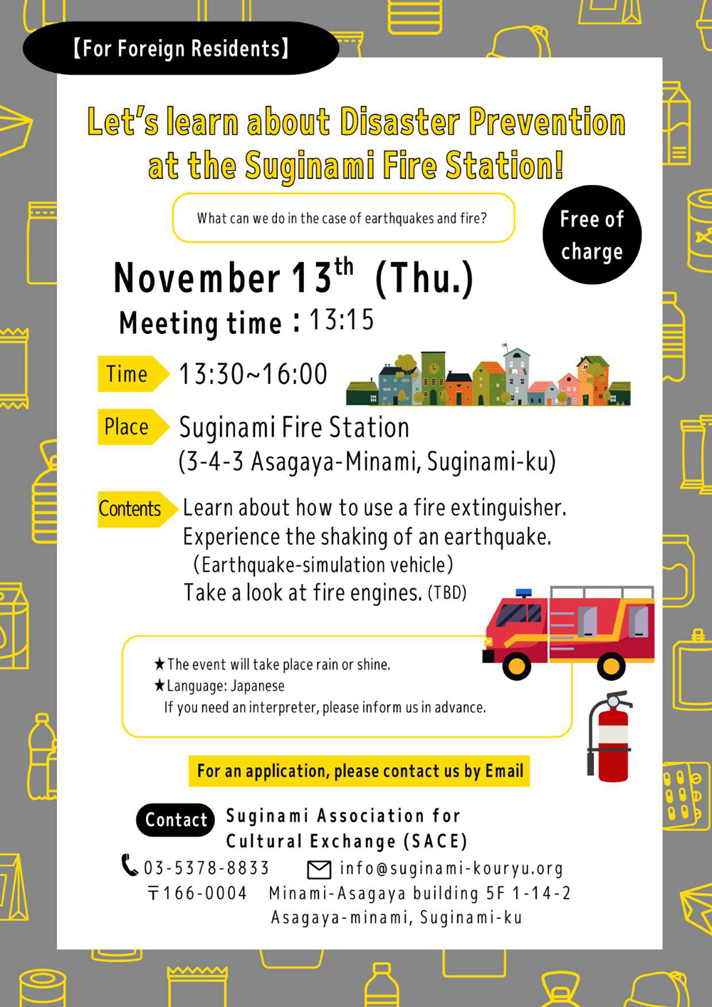 11月13日(木)13:30〜16:00 杉並消防署集合13:15 |