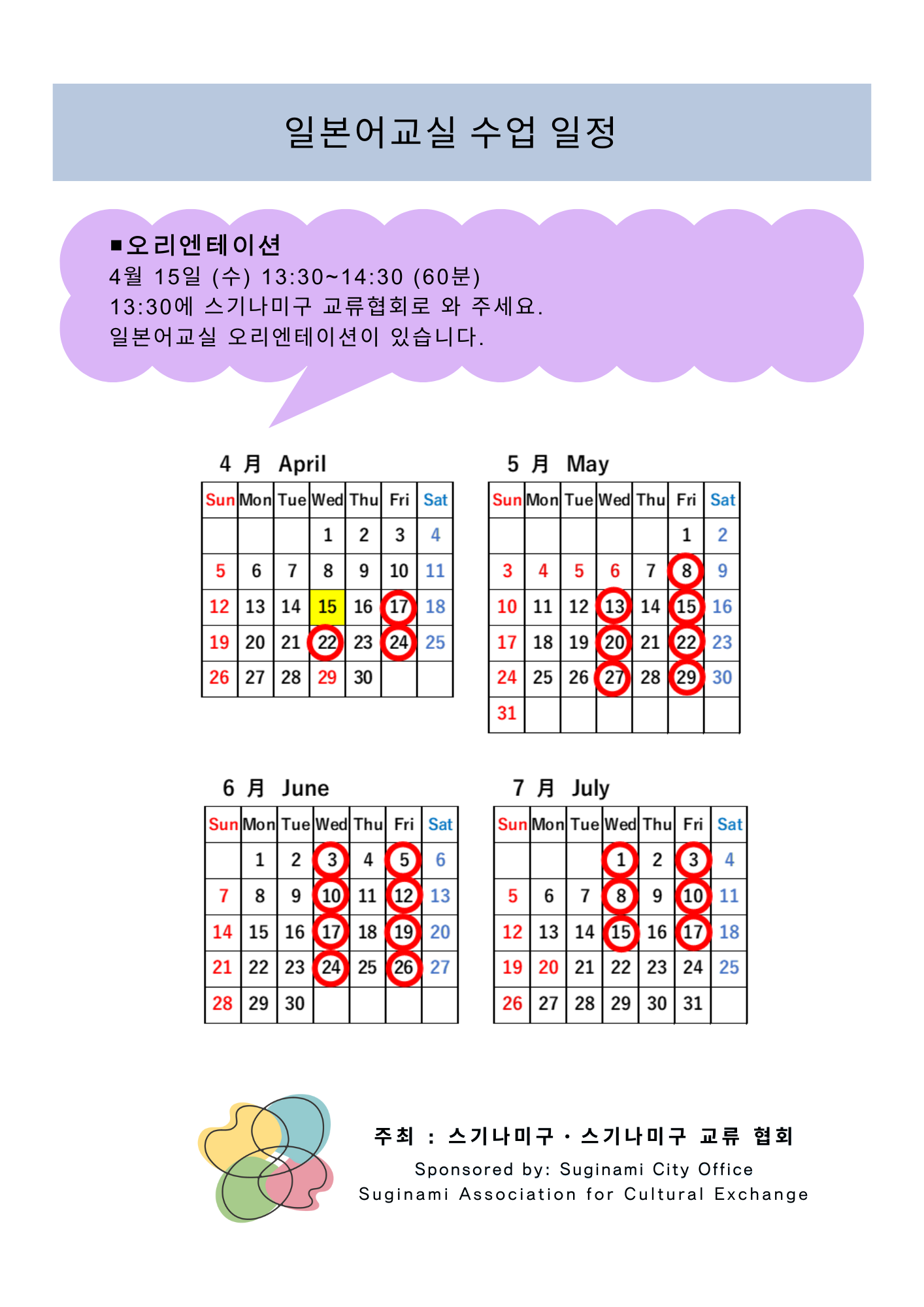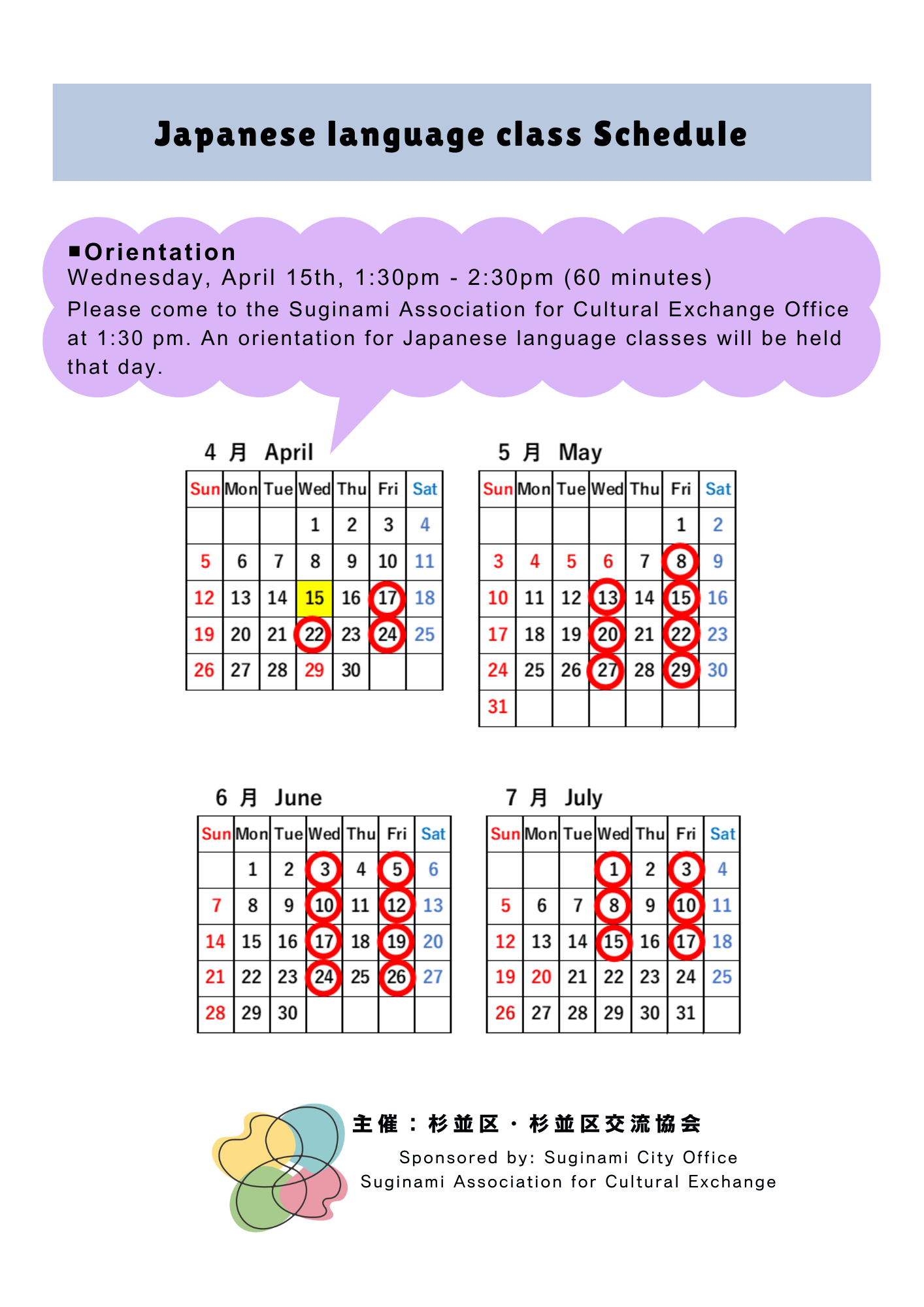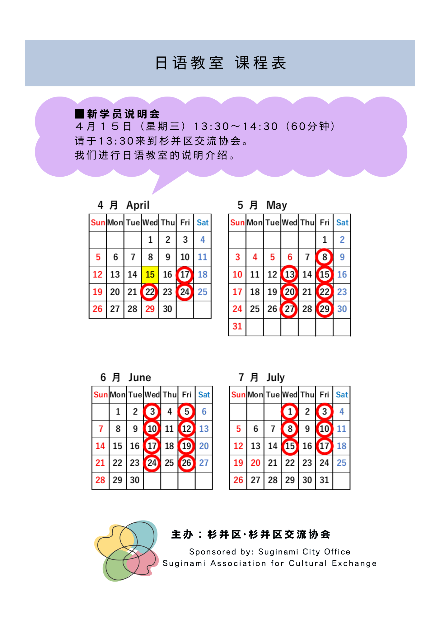 杉並区交流協会 TEL:03-5378-8833 (平日8:30〜17:15) E-mail:info@suginami-kouryu.org |