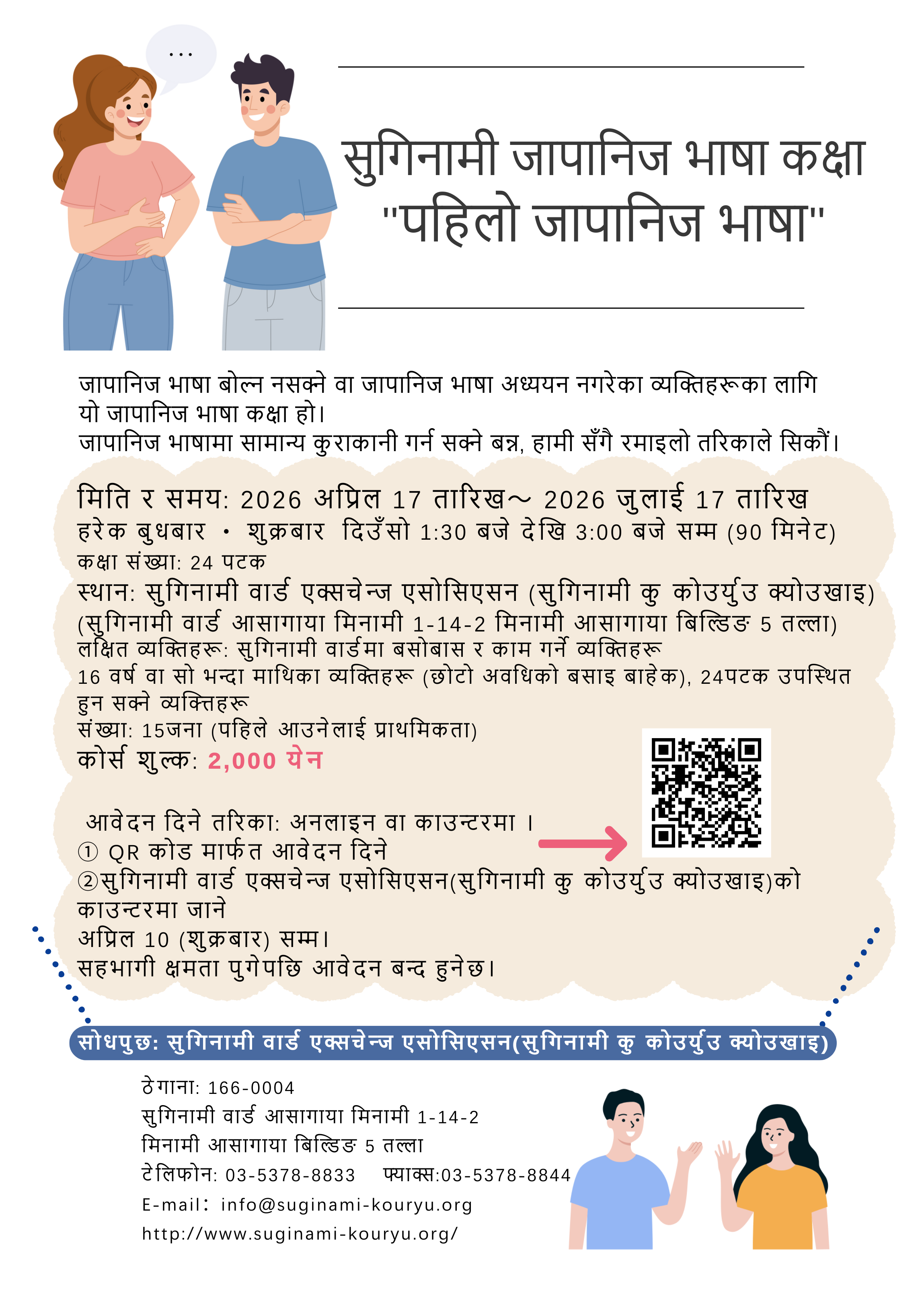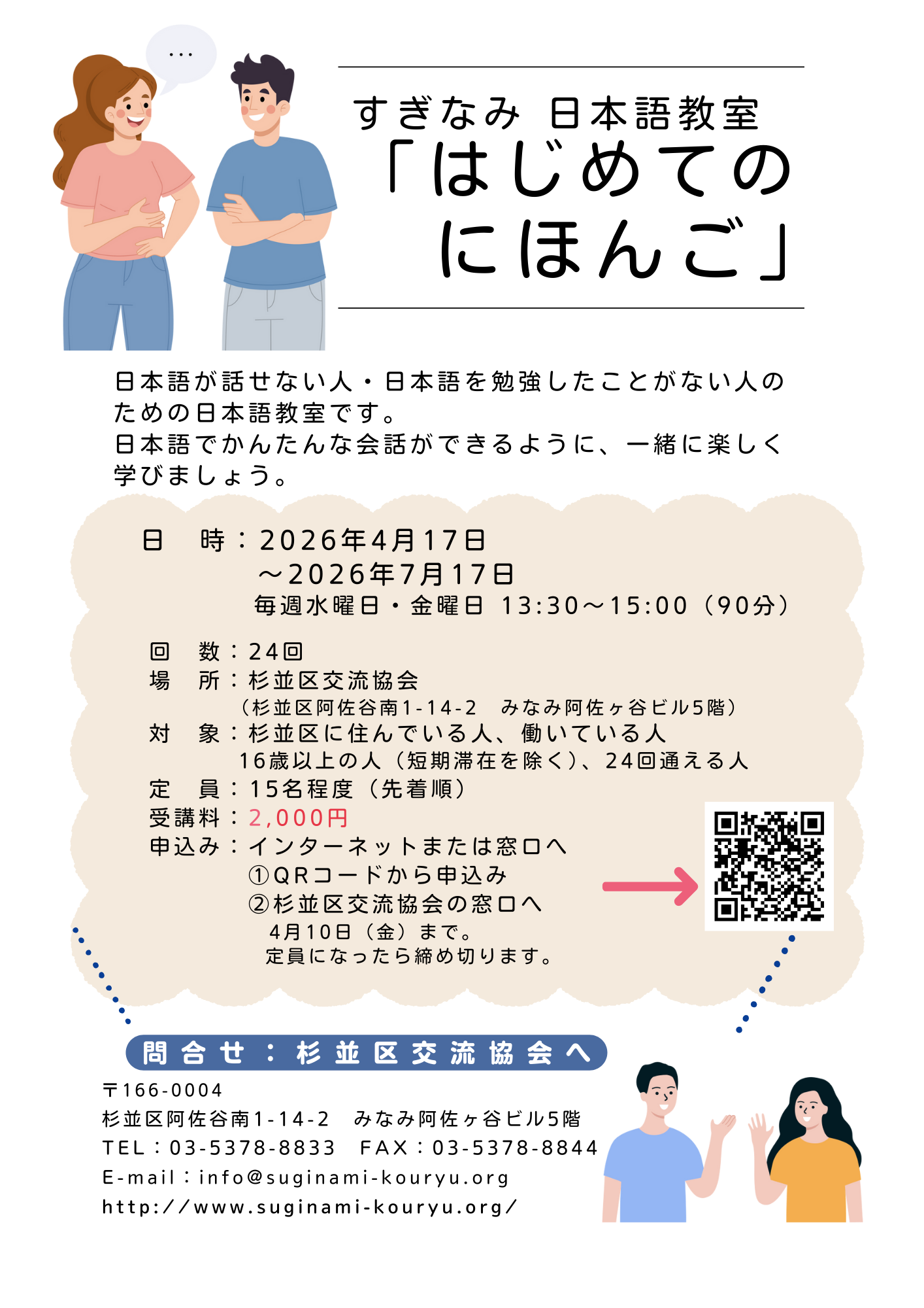 以下のQRコードから申し込むか、杉並区交流協会の窓口で申し込んでください。