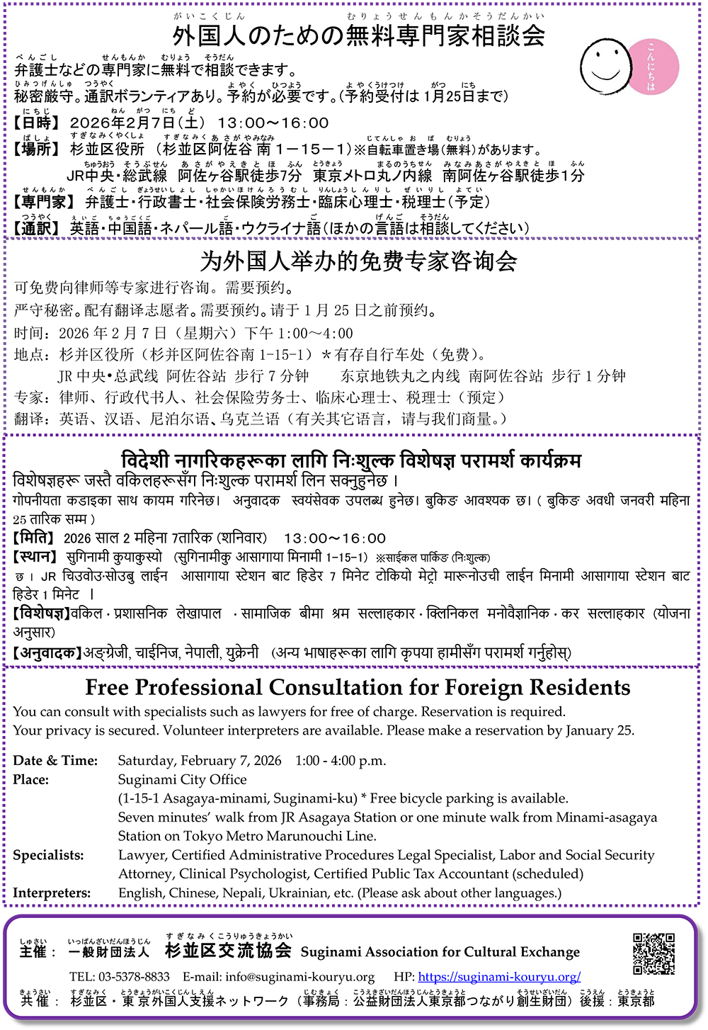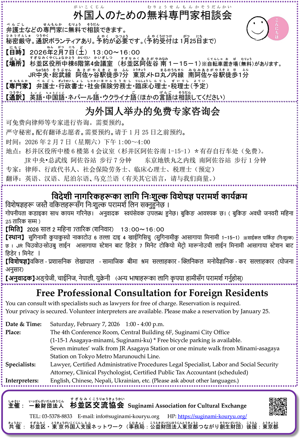 外国人(がいこくじん)のための無料(むりょう)専門家相談会(せんもんかそうだんかい)