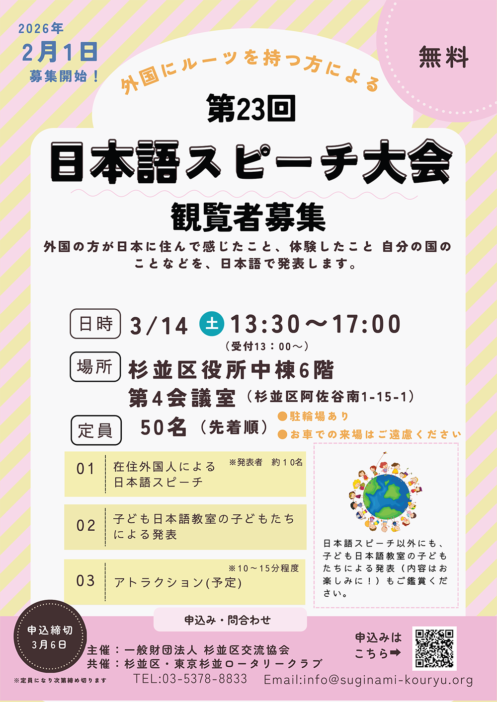 第23回 日本語スピーチ大会、観覧者を募集します。
